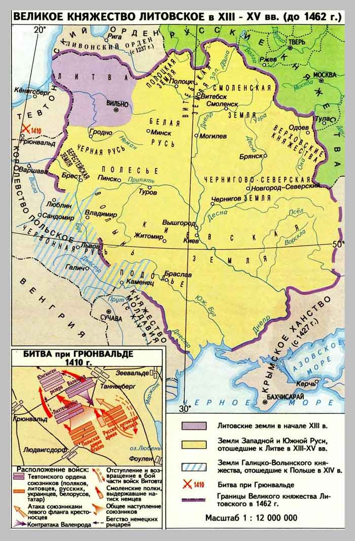 Великое княжество Литовское в 13-15 вв. // Отечественная история с древнейших времен до конца XVIII в. Атлас для школьников. / Отв. Ред. Е.М. Регентова. М., ПКО «Картография», 1999. С.7.
