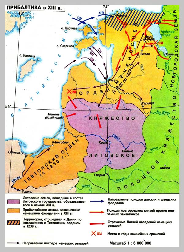 Прибалтика в XIII в. // Отечественная история с древнейших времен до конца XVIII в. Атлас для школьников. / Отв. Ред. Е.М. Регентова. М., ПКО «Картография», 1999. С.7.