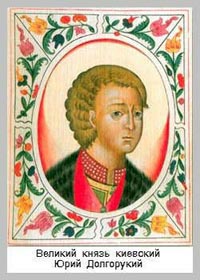 С именем Юрия Долгорукого связано и первое летописное упоминание о Москве. (4 апреля 1147 года в небольшом городке Москве на границе Владимиро-Суздальского княжества встретились два союзника князь Юрий Владимирович Долгорукий и князь Новгород-Северский Святослав Ольгович. "Приди ко мне, брате, в Москов", звал Юрий. Так впервые упоминает о Москве "Ипатьевская летопись". Дата записи условно считается датой основания Москвы.