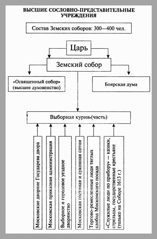 Высшие сословно-представительные учреждения // Кириллов В.В. Отечественная история в схемах и таблицах. М., 2005. С. 86.