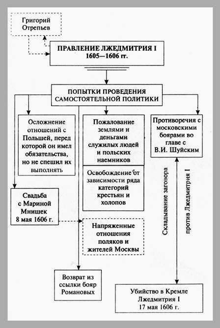 Правление Лжедмитрия I.// Кириллов В.В. Отечественная история в схемах и таблицах/ В.В.Кириллов. 2-е изд., дополн. - М.: Изд-во Эксмо, 2005. - 320 с. - С. 71