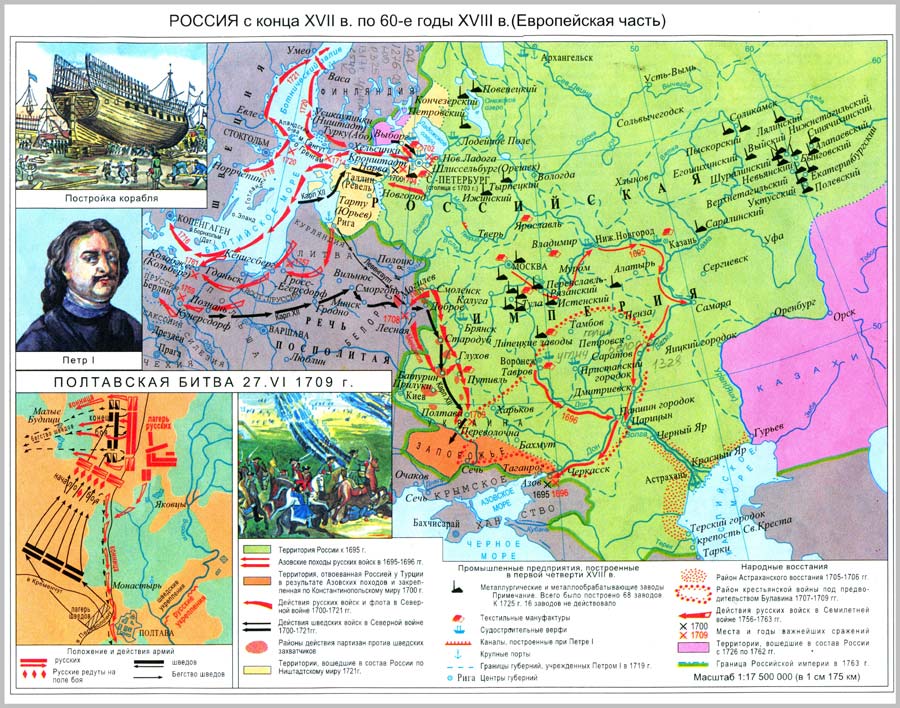 Россия с конца 17 века по 60-е годы 18 века // Отечественная история с древнейших времен до конца 18 века. Атлас / Отв. ред. Е.А. Регентова. Атлас подготовлен к изданию производственно-картографическим объединением "Картография" Роскартографии. - М., 1999. - С.15.
