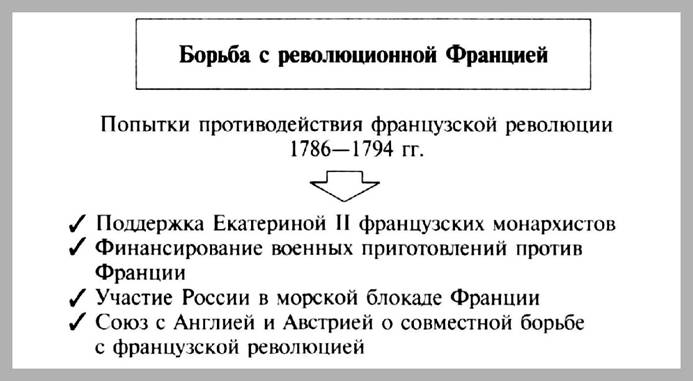 Борьба с революционной Францией. // Кириллов В.В. Отечественная история в схемах и таблицах/ В.В.Кириллов. 2-е изд., дополн. - М.: Изд-во Эксмо, 2005. - 320 с. - С. 132.