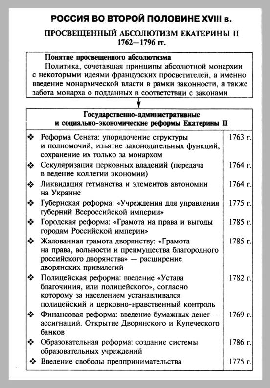 Просвещенный абсолютизм. // Кириллов В.В. Отечественная история в схемах и таблицах/ В.В.Кириллов. 2-е изд., дополн. - М.: Изд-во Эксмо, 2005. - 320 с. - С. 126.