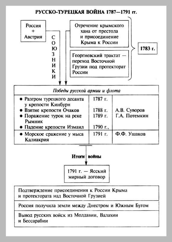 Русско-турецкая война 1787- 1791 годов. // Кириллов В.В. Отечественная история в схемах и таблицах / В.В.Кириллов. 2-е изд., дополн. - М.: Изд-во Эксмо, 2005. - 320 с. - С.134.