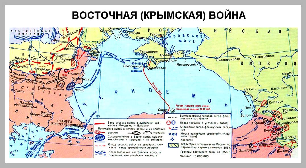 Крымская война 1853 – 1856 гг. // «История России». Атлас. Главный редактор Н.Н. Полункина. Отв. Ред. Атласа Е.М. Регентова. Атлас подготовлен к изданию ФГУП ПКО «Картография». М., стр. 23.
