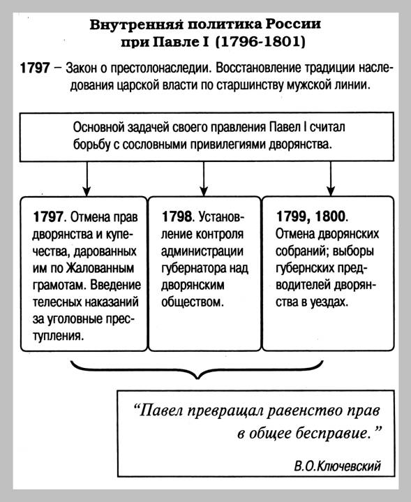 Внутренняя политика Павла I // История России в таблицах и схемах. Авторы составители Казиев С.Ш., Бурдина Е.Н. М., 1997. С. 64.