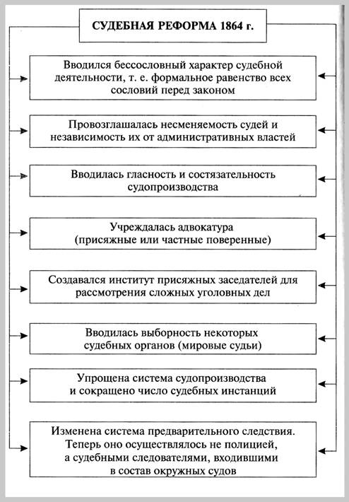 Судебная реформа 1864 г. // Отечественная история в схемах и таблицах/ В.В. Кириллов. 2-е изд., дополненное М., Эксмо, 2005. С. 179
