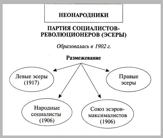 Неонародники (эсеры, энесы) // Отечественная история в схемах и таблицах/ В.В. Кириллов. 2-е изд., дополненное М., Эксмо, 2005. С.203