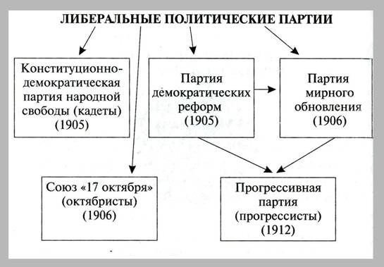 Либеральные политические партии // Отечественная история в схемах и таблицах/ В.В. Кириллов. 2-е изд., дополненное М., Эксмо, 2005. С.204