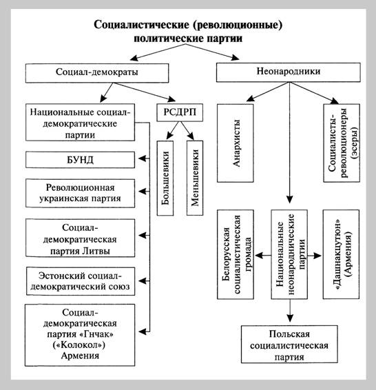 Социал-демократические партии // Отечественная история в схемах и таблицах/ В.В. Кириллов. 2-е изд., дополненное М., Эксмо, 2005.