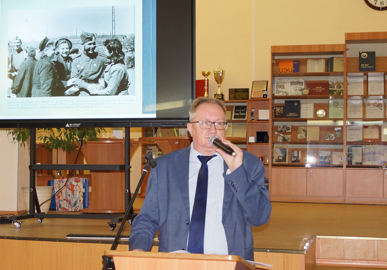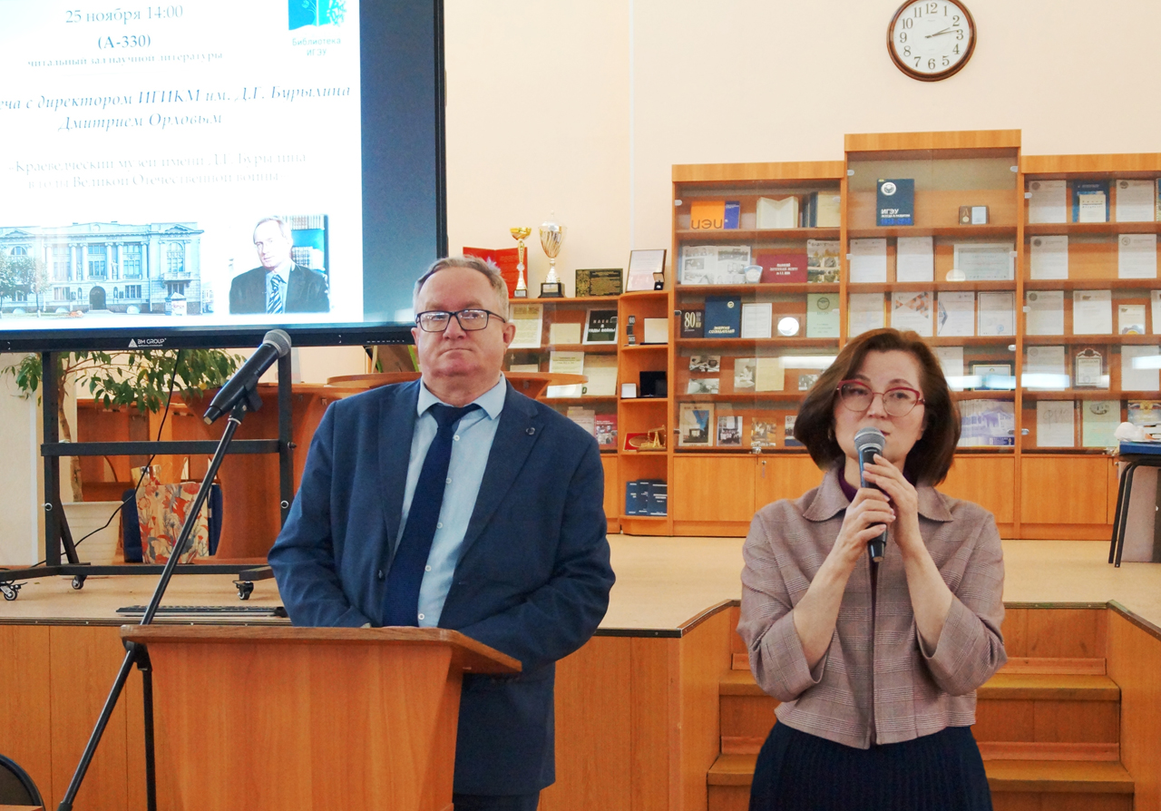 VIII сезон лектория «Краеведческиe сезоны в ИГЭУ» завершился 25 ноября встречей с директором Ивановского государственного историко-краеведческого музея им. Д.Г. Бурылина Дмитрием Львовичем Орловым. В 2025 году тематика лектория была посвящена вкладу жителей Ивановского края в общую победу над нацистской Германией в Великой Отечественной войне.