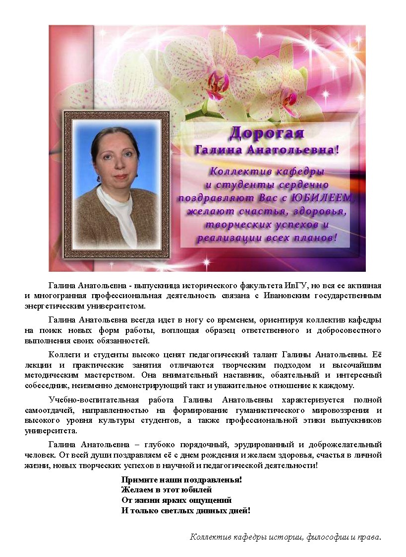 ПОЗДРАВЛЯЕМ Галину Анатольевну Будник с юбилеем!