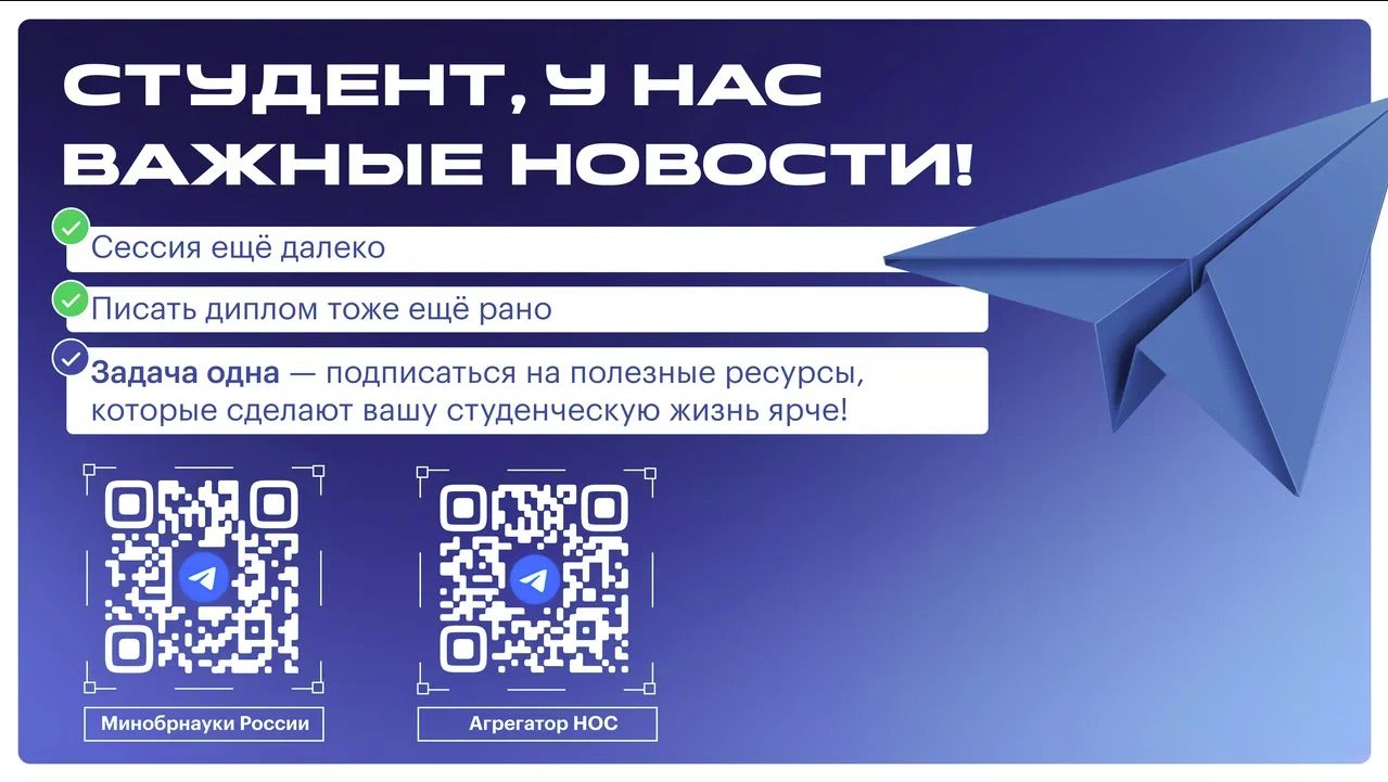 НОС: НАУКА, ОБРАЗОВАНИЕ, СТУДЕНЧЕСТВО: Агрегатор студенческих СМИ «НОС» — это ваш ключ ко всем возможностям для молодёжи. На этом ресурсе вы увидите, как проходят студенческие годы у обучающихся российских вузов и что поможет сделать вашу жизнь в университете ещё ярче. А если вы интересуетесь медиа и хотите снимать контент по всей стране, то вступайте в Студенческий Медиацентр Минобрнауки России, — для этого напишите в бот обратной связи НОС «Хочу в СМЦ».