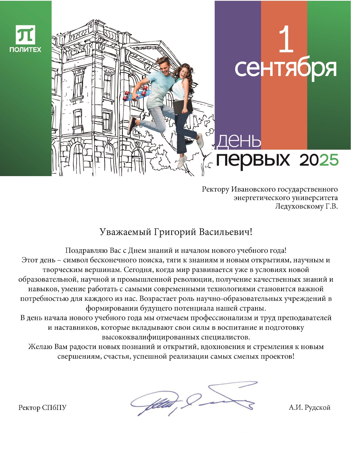 Желаю студентам, преподавателям и сотрудникам ИГЭУ новых достижений в 2025/2026 учебном году!