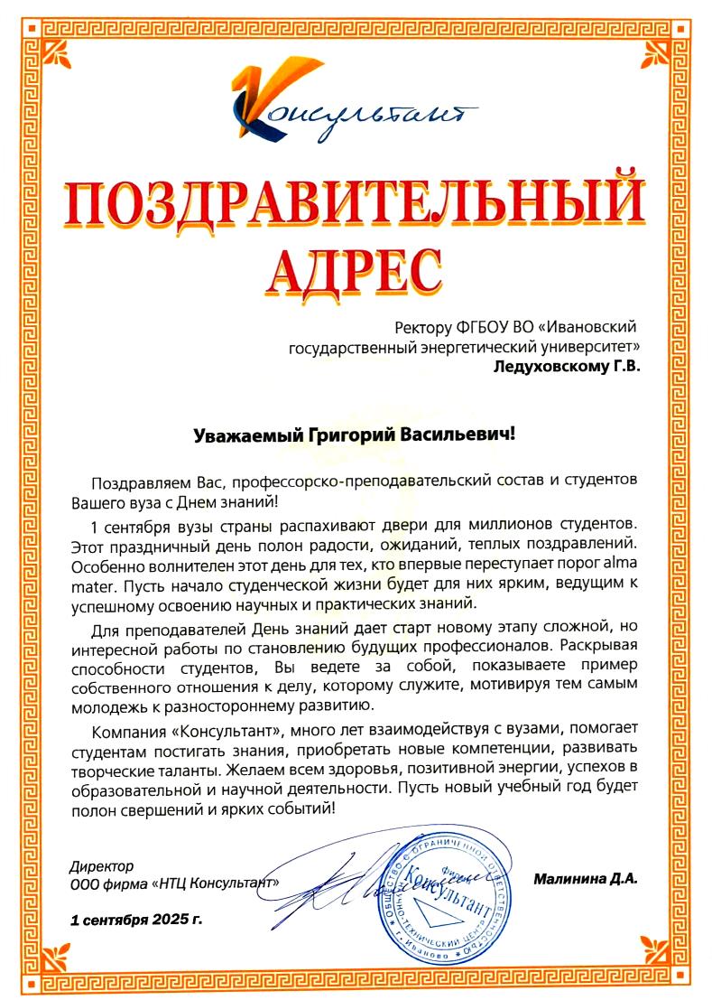 Поздравляем профессорско-преподавательский состав и студентов Ивановского государственного энергетического университета с Днем знаний!