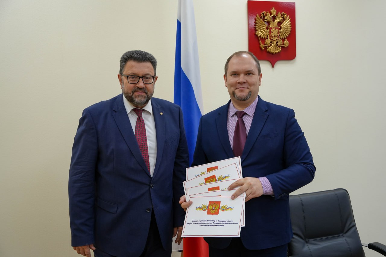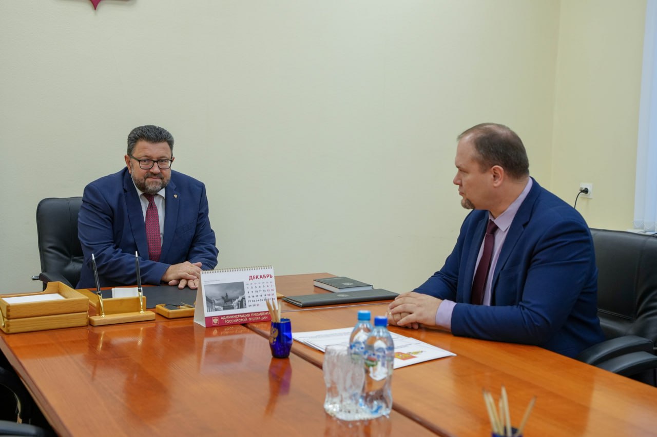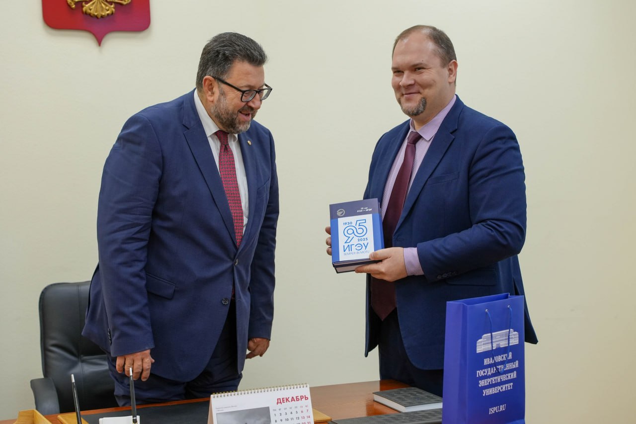 В преддверии важного события в череде юбилейных мероприятий, приуроченных к 95-летию энергоуниверситета, - программы «ИЭИ-ИГЭУ: 95 лет академического и научного партнерства», состоялась рабочая встреча ректора ИГЭУ Ледуховского Г.В. с Главным федеральным инспектором по Ивановской области аппарата полномочного представителя Президента Российской Федерации в Центральном федеральном округе Калашниковым М.М.
