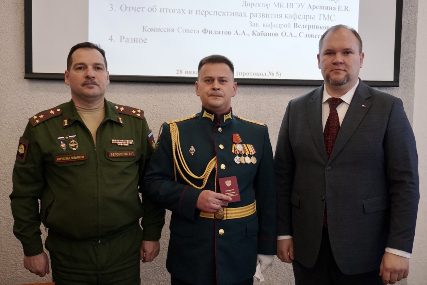 - Диплом кандидата педагогических наук – полковнику Кокошенко Виталию Степановичу, начальнику учебной части - заместителю начальника военного учебного центра ИГЭУ.