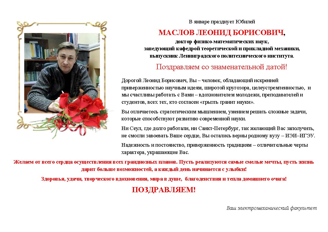 Поздравляем с юбилеем Леонида Борисовича МАСЛОВА!